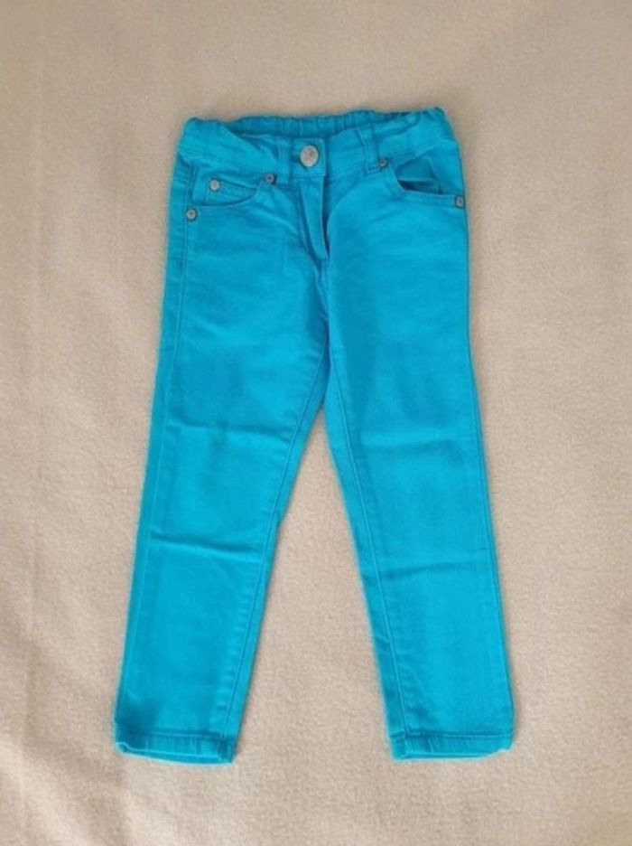pantalon jeans 3 ans en très bon état couleur bleu turquoise et bouton coeur