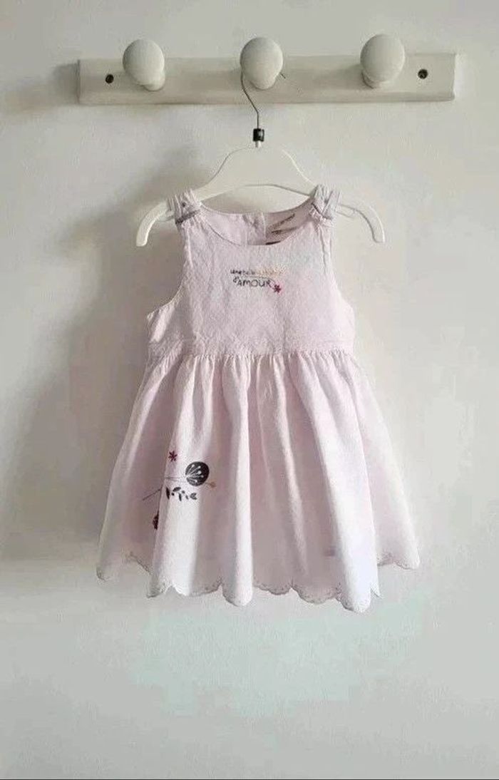 robe 12 mois orchestra 74 cm "une belle histoire d'amour" neuve juste essayée (pas bonne saison) couleur rose clair, broderies