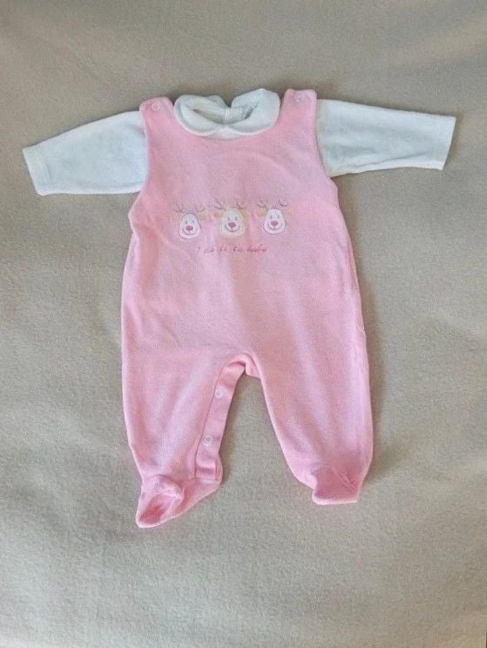 pyjama 2 pièces 6 mois (petit pull velours, pyjama) couleur rose et crème, cerf ou renne en excellent état