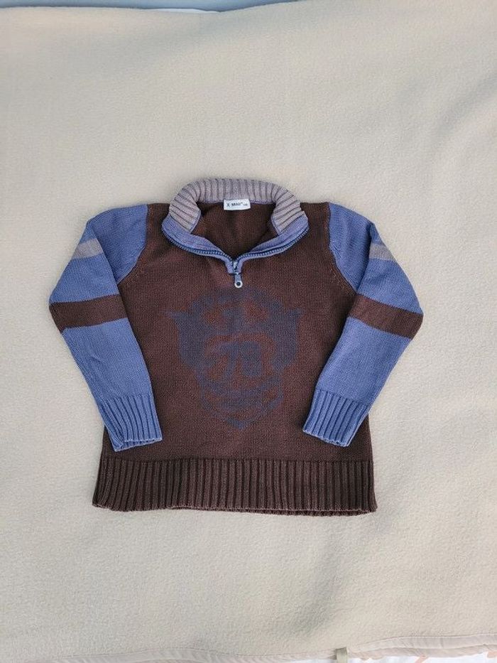 pull x mail 116 cm en bon état, porté marron et bleu #cricou67garçon6ans