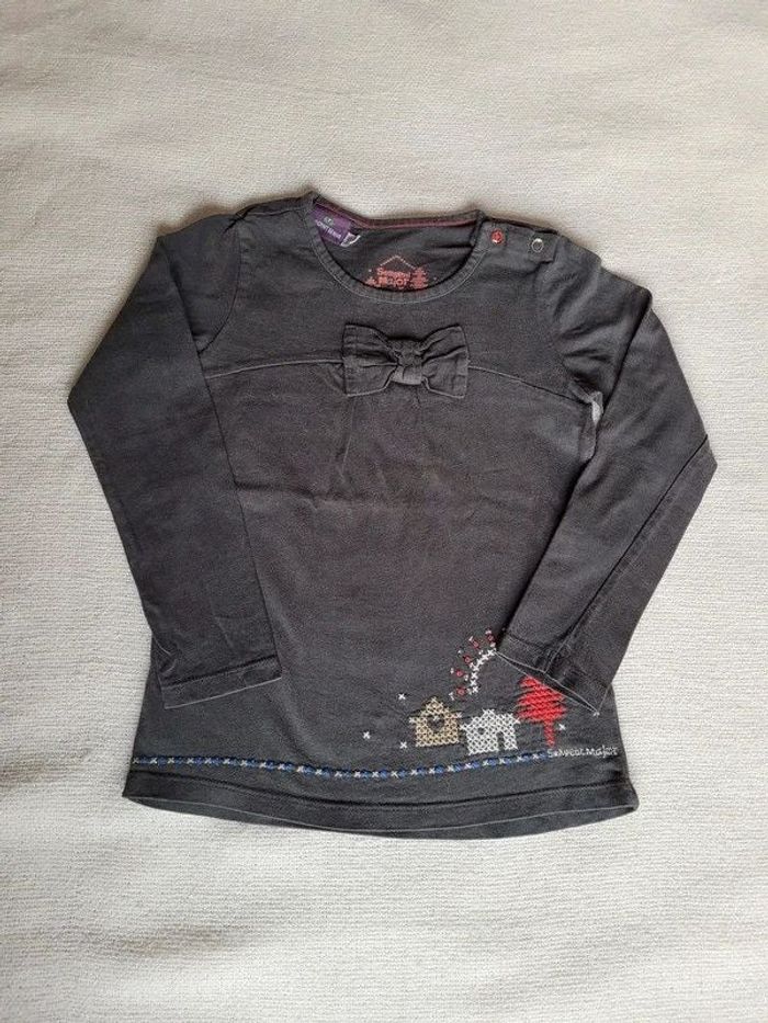t-shirt manches longues sergent major 5 ans 110 cm couleur gris foncé, flot au milieu et broderie en bas à droite en bon état, la décoration d'un des 2 boutons en haut s'est décollée (dernière photo) #cricou67fille5ans