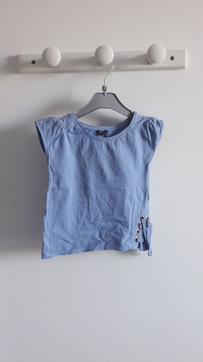 t-shirt kiabi 3 ans 90/97 cm en très bon état, couleur bleu lila avec pois doré