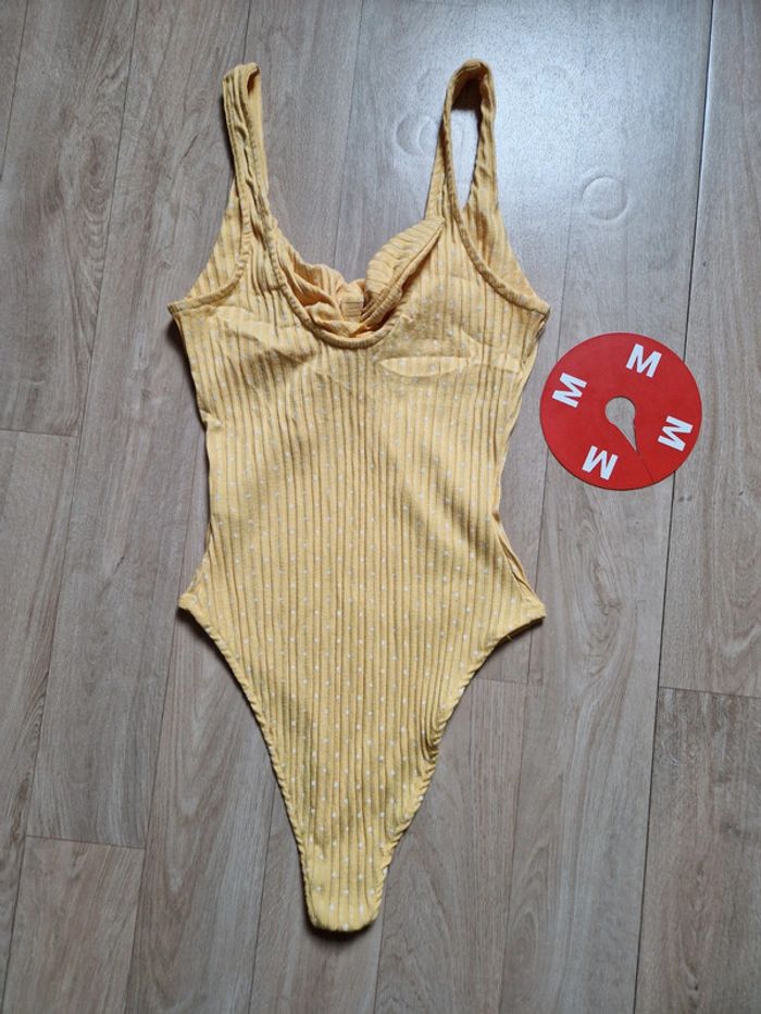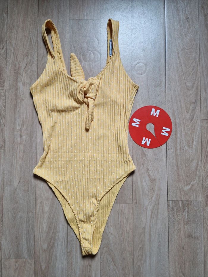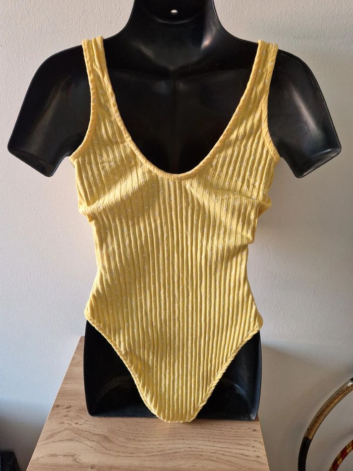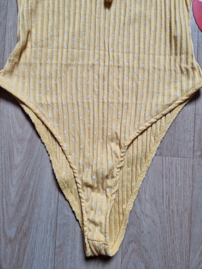 Bodie jaune et blanc string col V Bershka Taille M Très bon état Nœud modulable devant