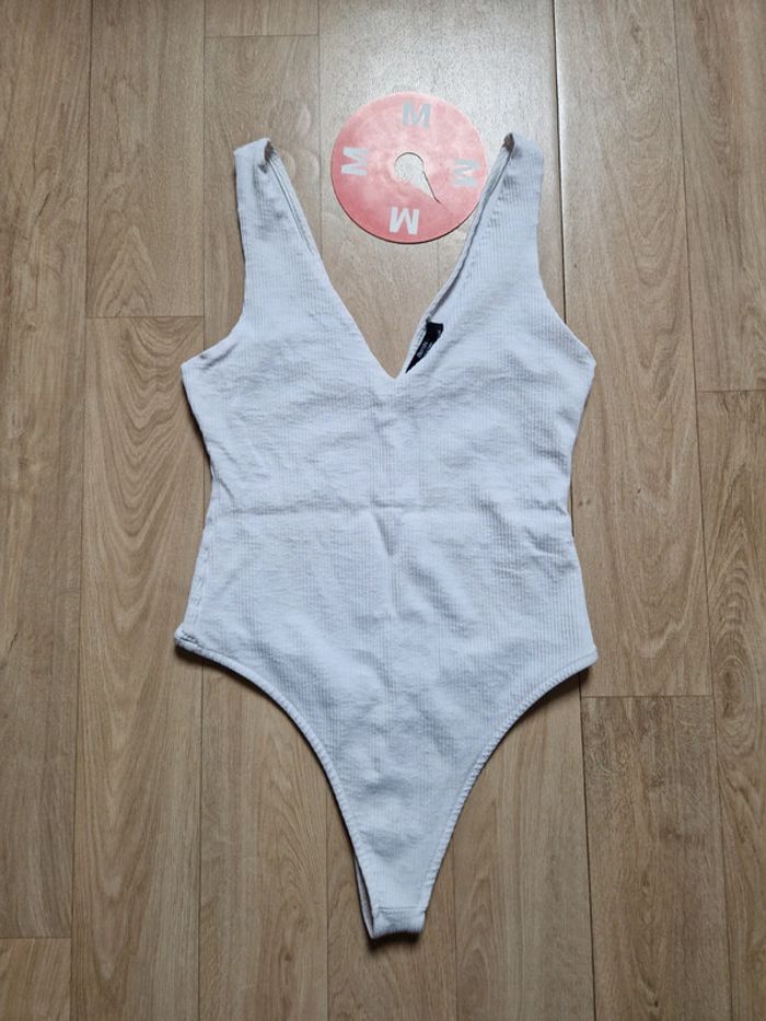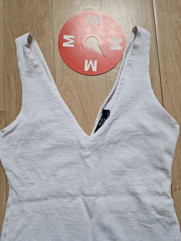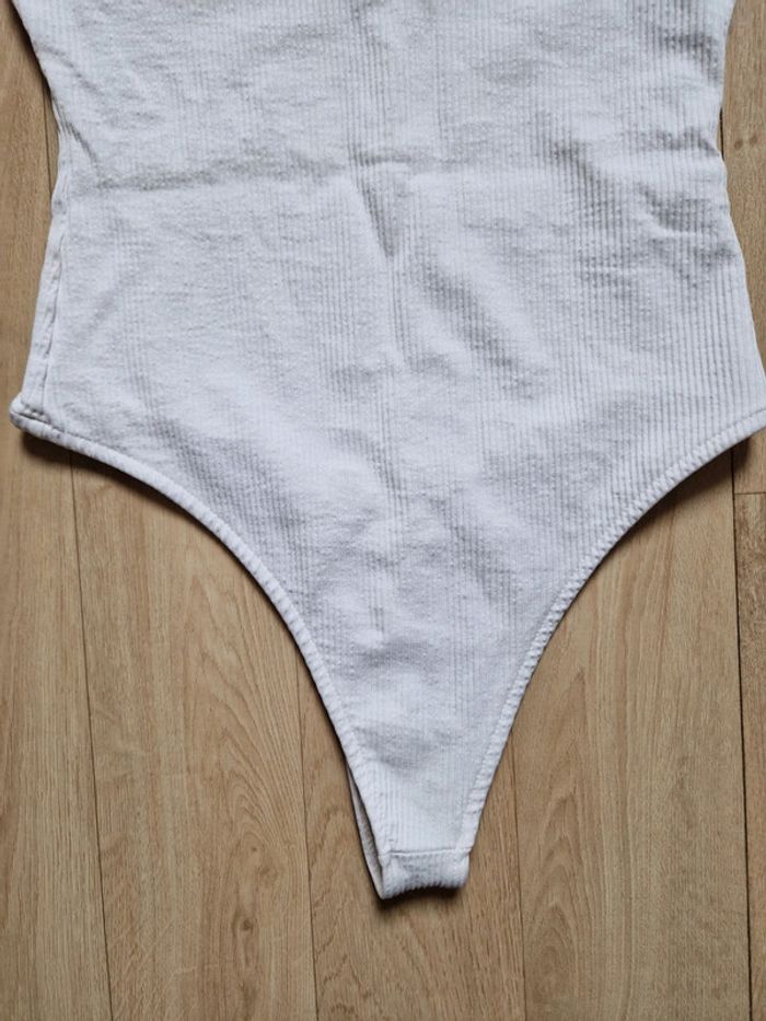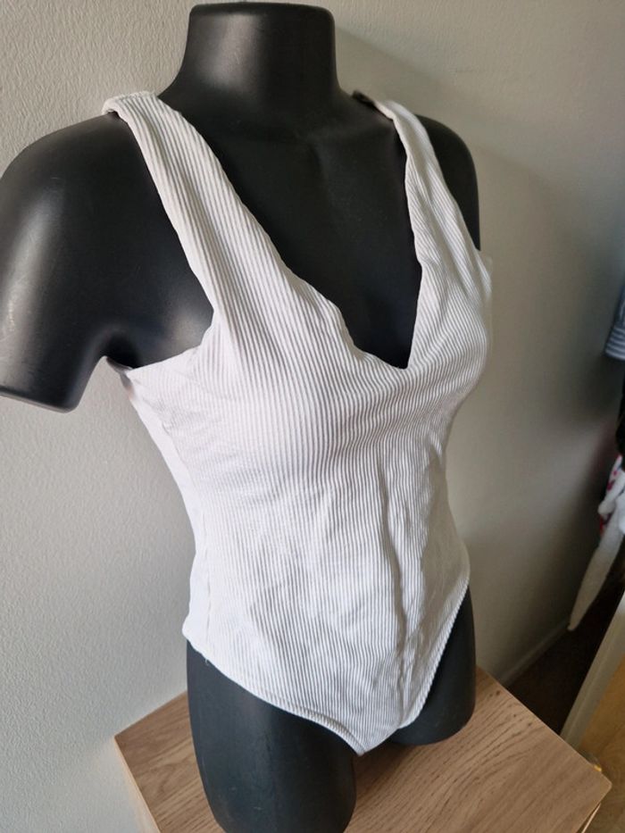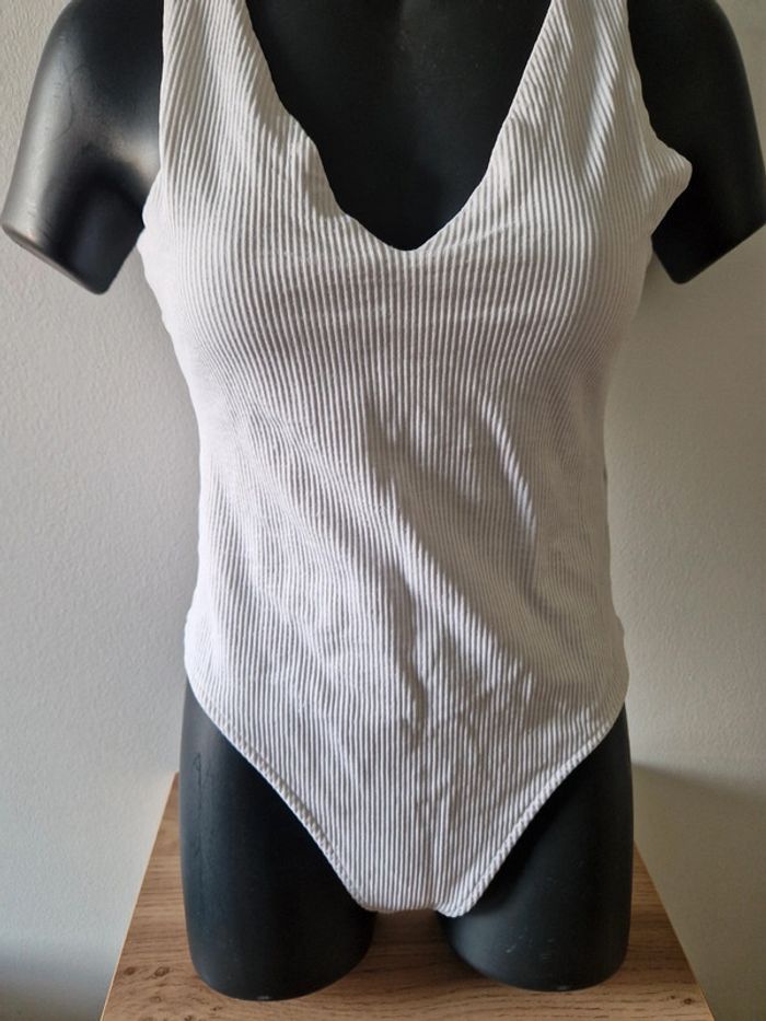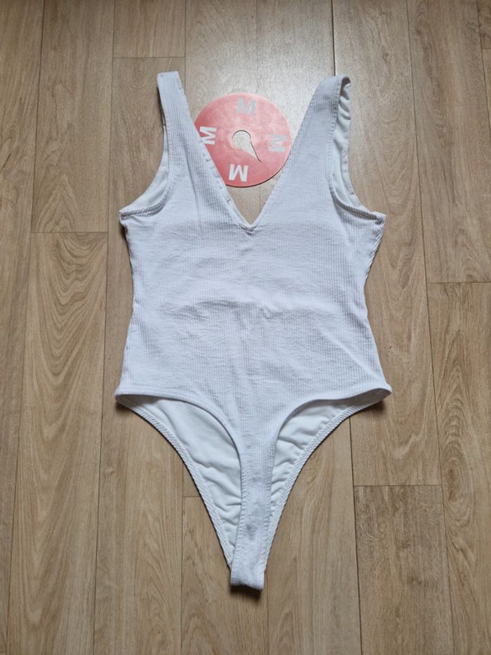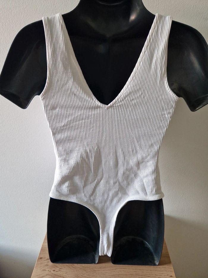 Bodie blanc Taille M Très bon état Bershka Col V, bodie string Blanc côtelé