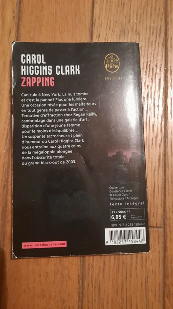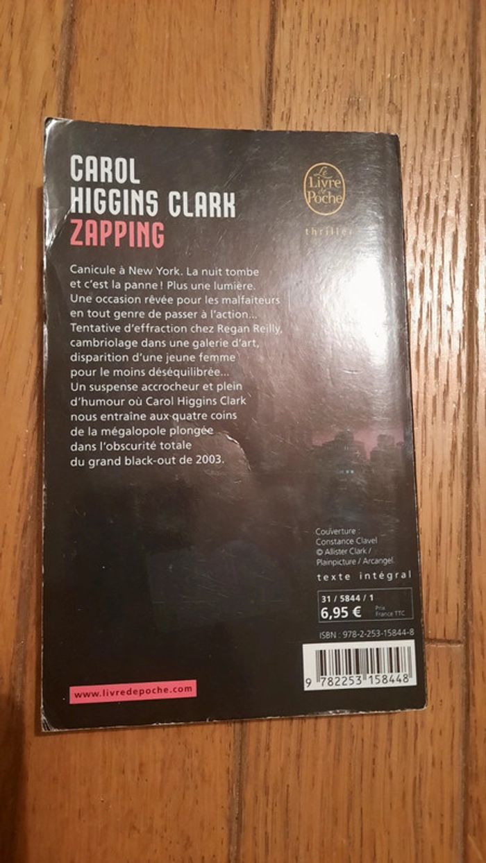 Livre Zapping Carole Higgins Clark Thriller le livre de poche État couverture cornée à l avant et presence de pliure au dos. #ValandreLivre #ValandreLivrePolicier