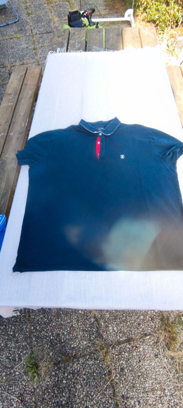 Polo noir avec empiècement blanc Polo xxl mais correspond plus à un xl Dimension aisselle à aisselle 62 cm hauteur 65cm