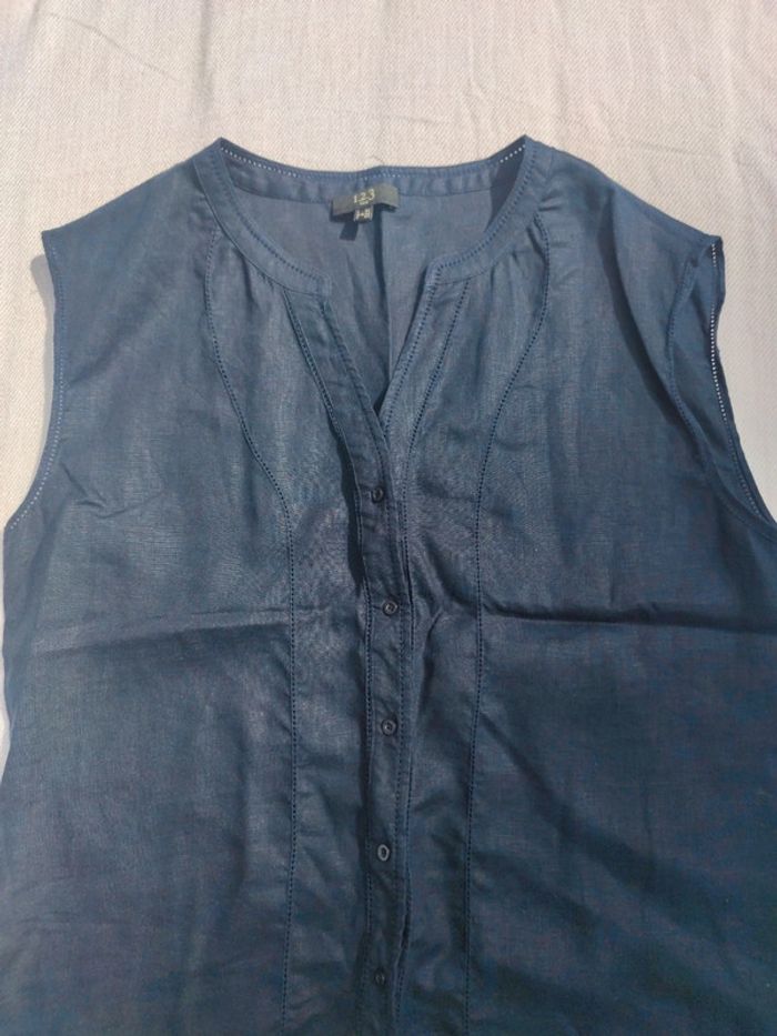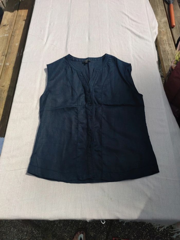 Blouse débardeur en lin taille 42 couleur marine comme neuf Dimensions aisselle à aisselle 51 cm Longueur 62cm