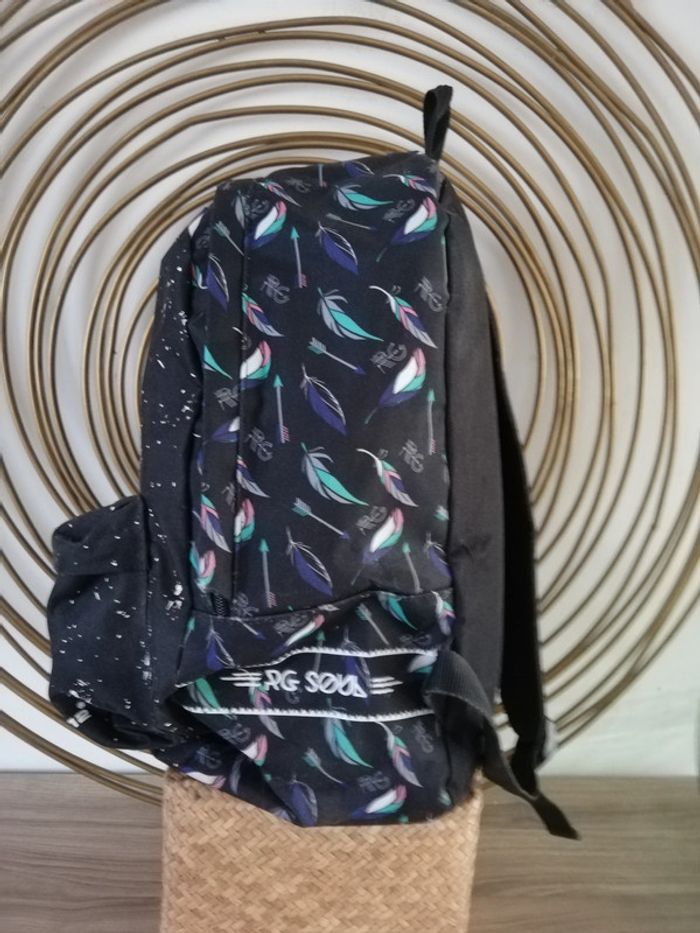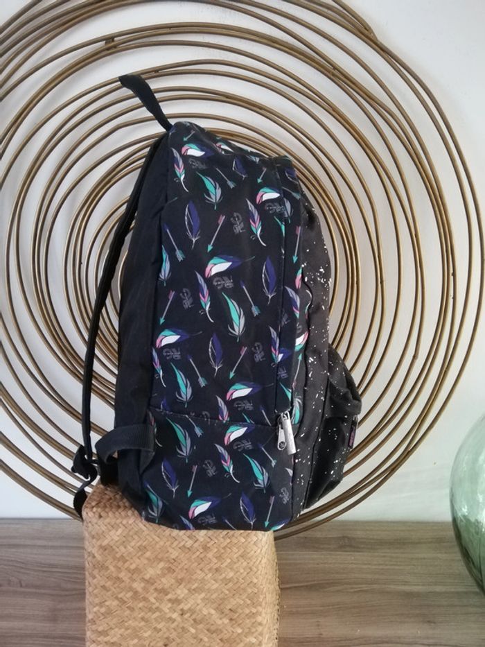 Je vends ce sac à dos de la marque RG en très bon état. Coloris noir avec des plumes colorées Bretelles réglables Une grande poche +1 petite sur le devant Dimensions 42cmx37cm #sacàdos #sacadosplume #sacadosrg