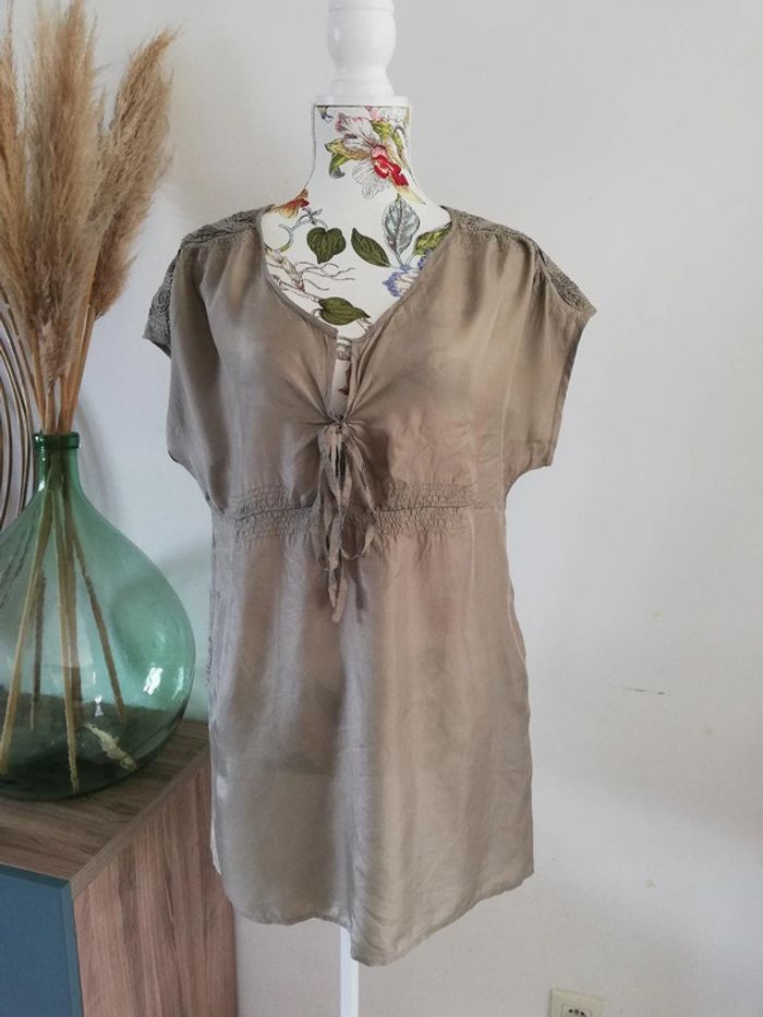 Je vends cette tunique de la marque Zara en très bon état. 100% soie coloris kaki Taille XS (taille grand) #tuniquezara #zara #tuniqueensoie