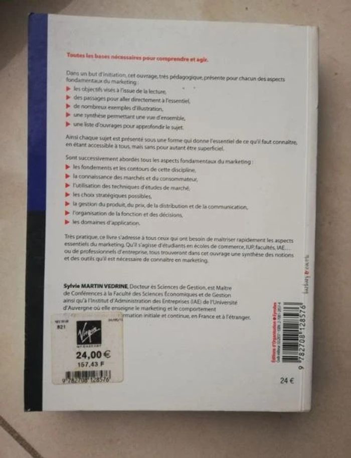Je vends ce livre d'initiation au Marketing. Il est très légèrement abîmé. 390 pages #livre #livremarketing #livreinitiationaumarketing #livreetudessuperieursmarketing