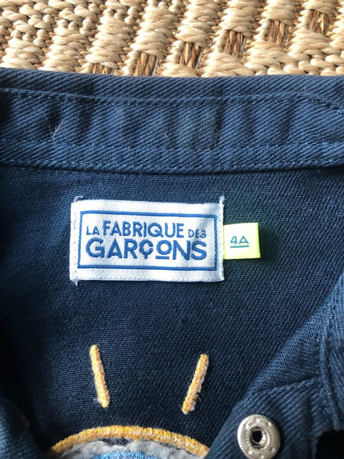 Chemise bleue marine / veste légère en très bon état Peu portée Taille 4 ans Marque la fabrique des garçons Avec pressions