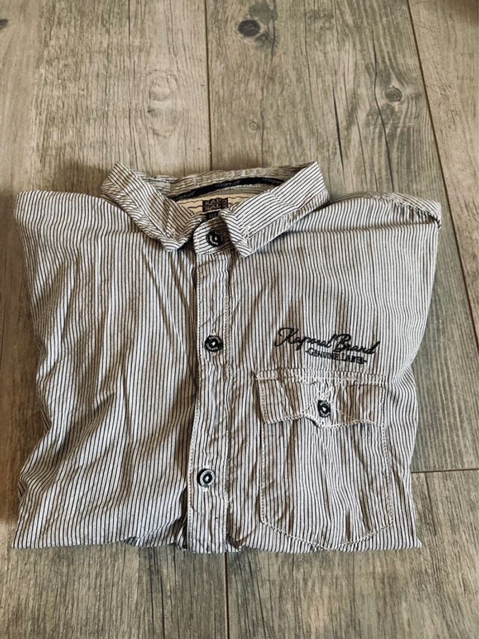 Chemise homme Kaporal grise et rayée noire. Très bonne état juste un peu froissée sur la photo