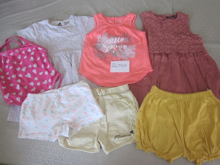 24 mois, 2 robe mc/sans manche + haut + 2 shorts + 3ème offert + maillot bain, kiabi, disney, soogirls