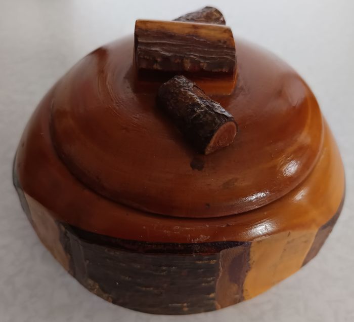 Boite ancienne Ronde bois vernis mini troncs - Diam 15,5cm - Hauteur 12cm Totale - photo numéro 1