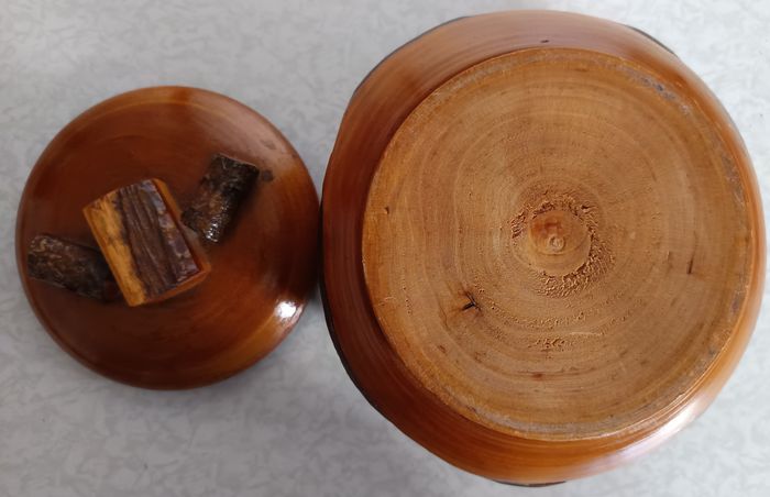 Boite ancienne Ronde bois vernis mini troncs - Diam 15,5cm - Hauteur 12cm Totale - photo numéro 4