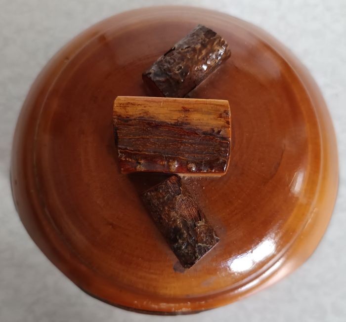 Boite ancienne Ronde bois vernis mini troncs - Diam 15,5cm - Hauteur 12cm Totale - photo numéro 3