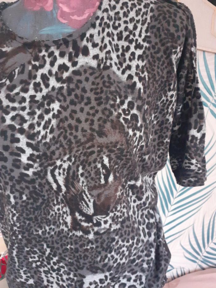 Tee-shirt manches ouverte imprimé panthere M - photo numéro 4