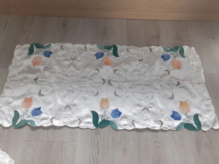 Chemin de table satiné tulipes vintage - photo numéro 1