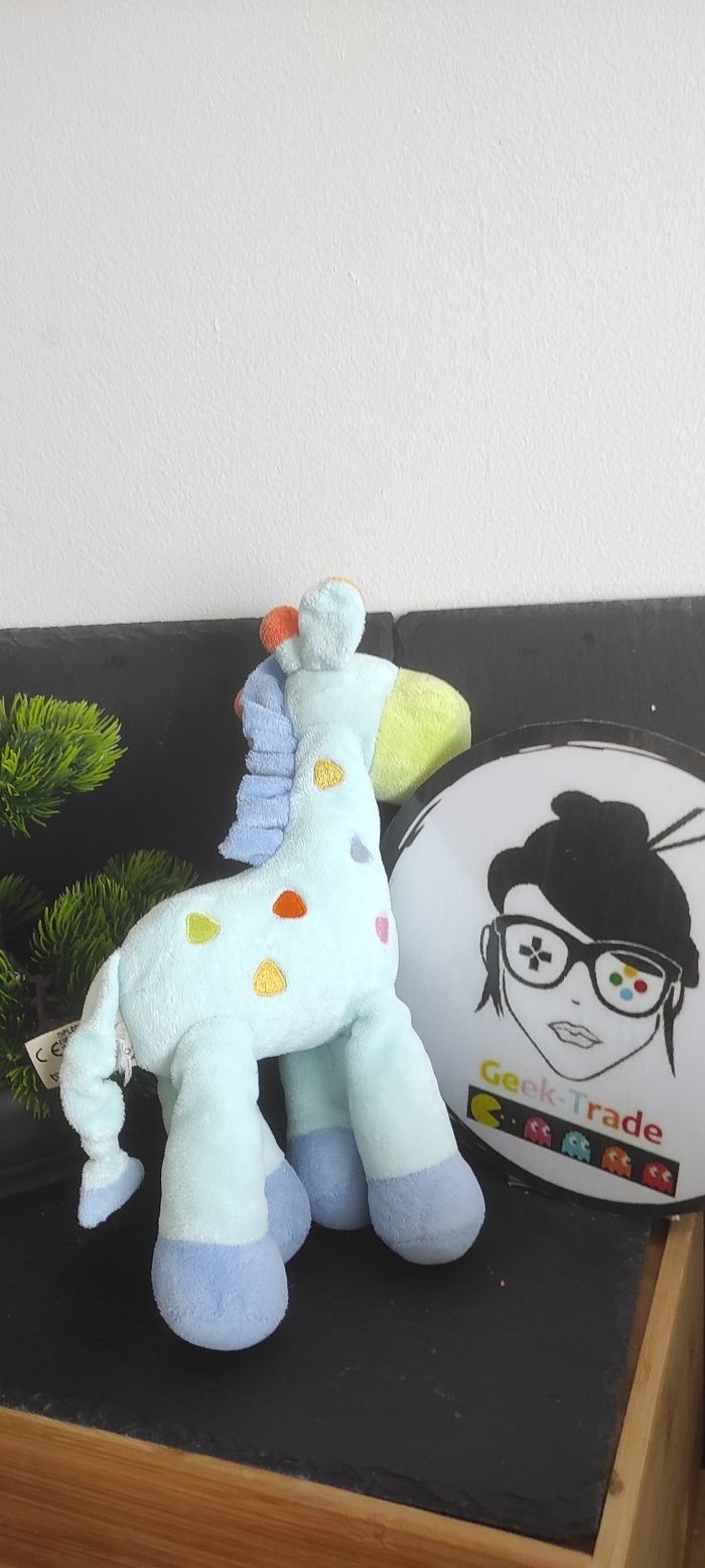 doudou peluche cheval bleu mots d'enfants girafe ancien triangle vert orange - photo numéro 1