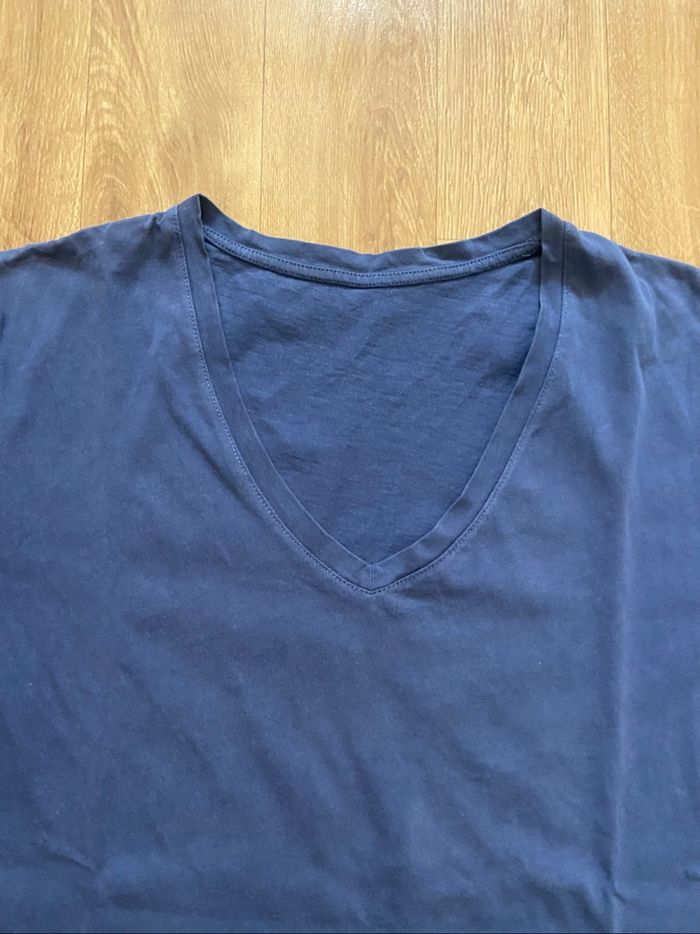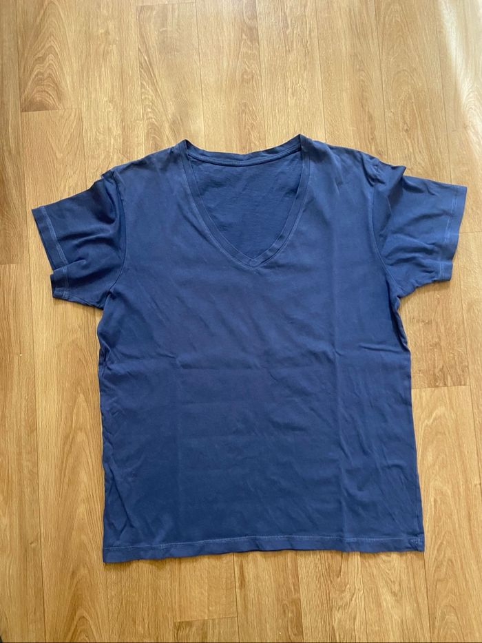 T-shirt bleu Col V L Longueur 66 cm Coton