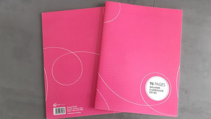 Lot de 2 cahiers neufs 24x32 96 pages grands carreaux couverture plastifiée rose #jenni1428_fournitures_scolaires