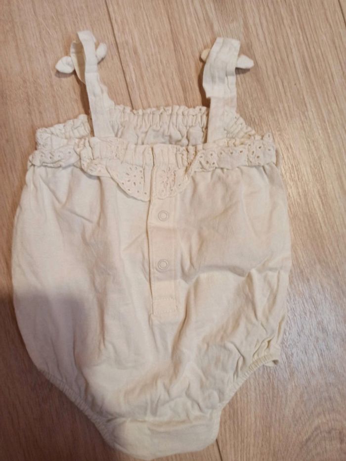 Barboteuse, bodie bretelle, taille 6 mois, marque kiabi #eloetgui_bebe_6mois #barboteuse6mois #barboteusefille6mois #bodiesbretelles6mois