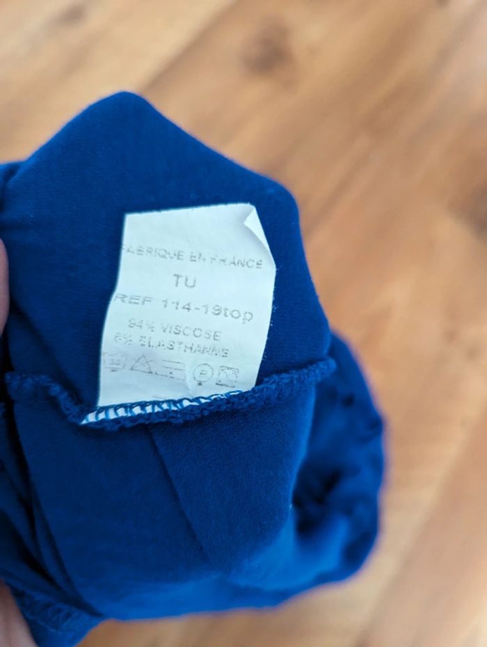 Taille unique mais convient à un 36 voir 38. En élastane et viscose. Manche 3/4.