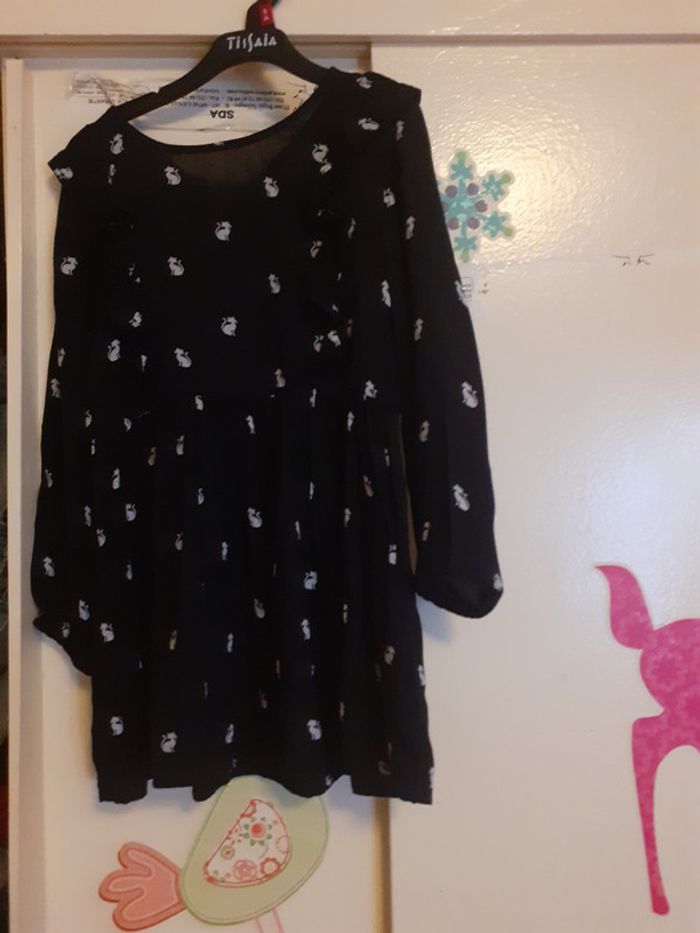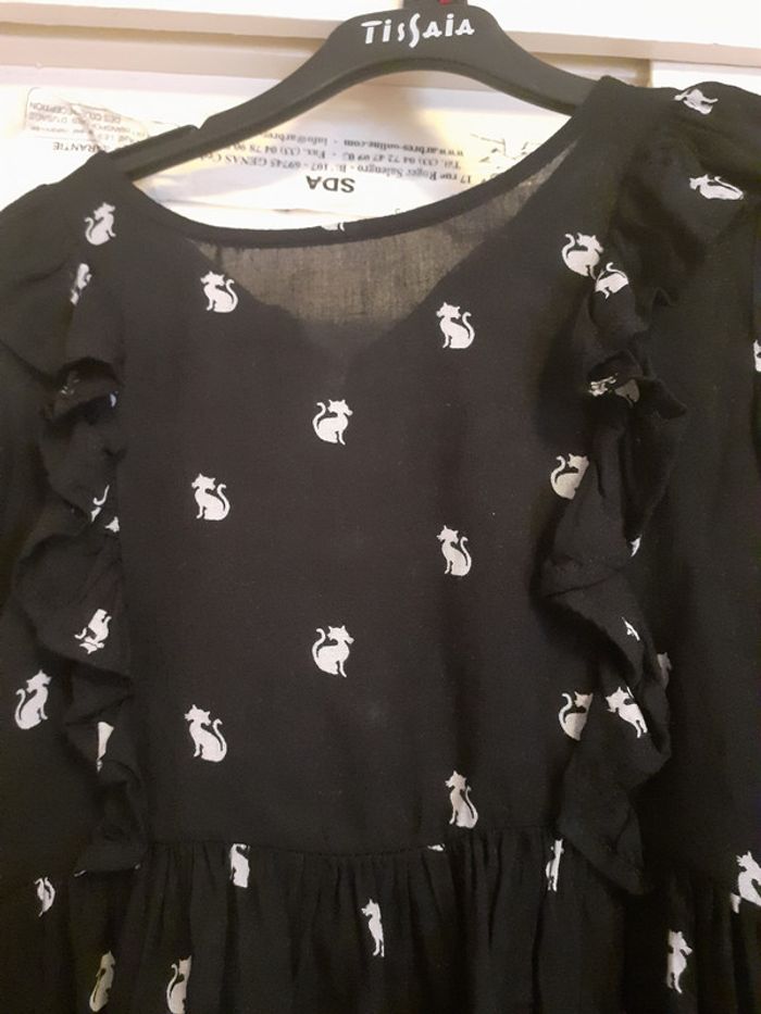 Jolie petite robe tunique noir et petit chat blanc