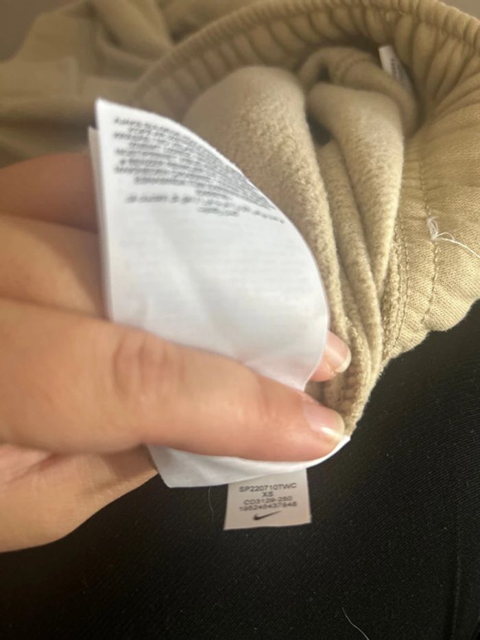 À vendre, superbe, jogging Nike, couleur beige, taille XS acheter 65€ chez sport 2000 facture à l’appui très très peu porté, présence de poche, taille élastique