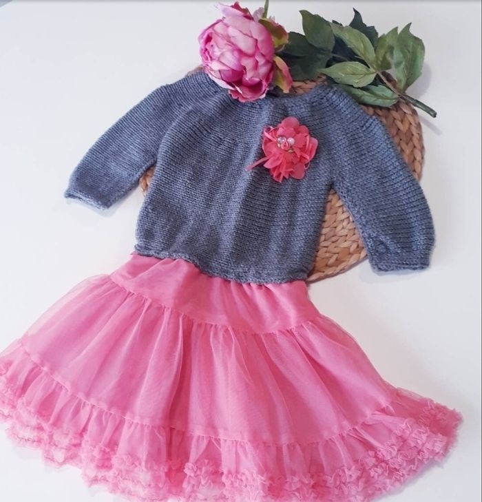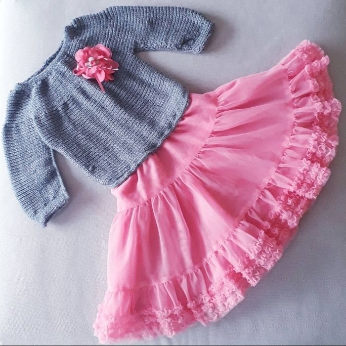 Cette magnifique robe tulle tutu à manches longues conviendra parfaitement à une petite fille de 3 ans pour passer les saisons d'été et de printemps. Idéal pour offrir lors d'une naissance ou un anniversaire. La robe est faite en deux partie, le haut est tricoté à la main avec du fil acrylique au point jersey et les bordures sont faites au point fantaisie, le bas est un jupon de tulle doublé de couleurs rose et grise.
