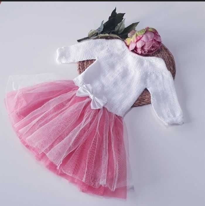 Vêtement ensemble robe fleurie  tricot fait main bébé fille 18 mois - photo numéro 1