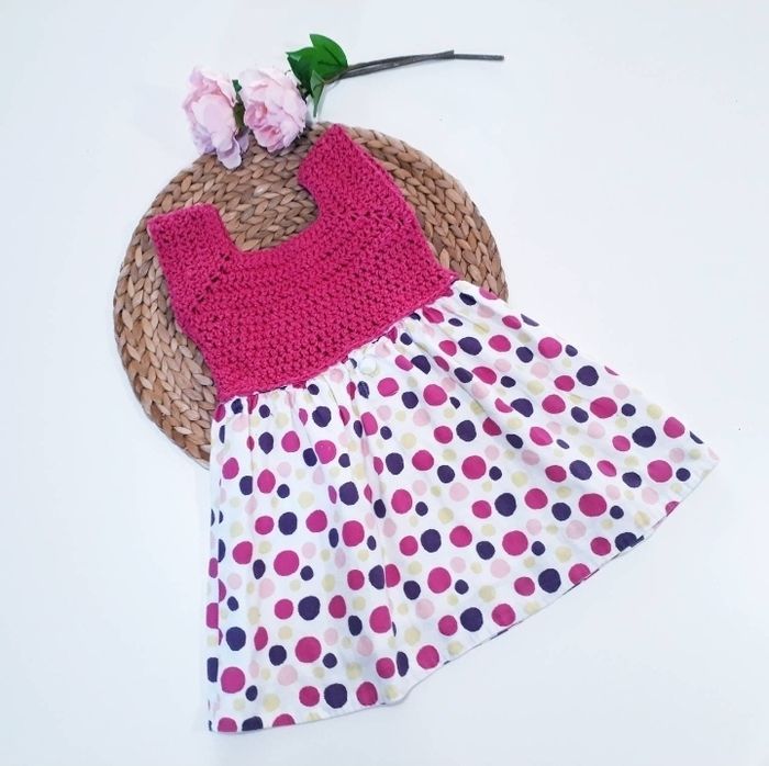 Vêtement robe rétro vintage à pois fait main au crochet 100% coton fille 2 ans Superbe robe rétro vintage rouge faite au crochet avec de du fil de coton. Le bas est également en coton avec des pois aux jolies couleurs vives. Très pratique, la robe se ferme par un simple bouton dans le dos. Cette robe est unique. Tour de taille 53 cm Hauteur 52 cm Longueur des manches 32 cm Idéale pour l'été cette jolie robe est légère et confortable. Elle fera son petit effet ! Cadeau parfait pour offrir à une petite fille lors de son anniversaire. Vous avez la possibilité de laisser un message personnalisé. Je peux vous faire d'autres modèles de différentes tailles, je me ferai une joie de vous confectionner une création sur mesure. Envoi rapide et livraison à domicile. Emballage soigné, la robe sera enveloppée dans du papier de soie protégée dans une boite en carton rigide.