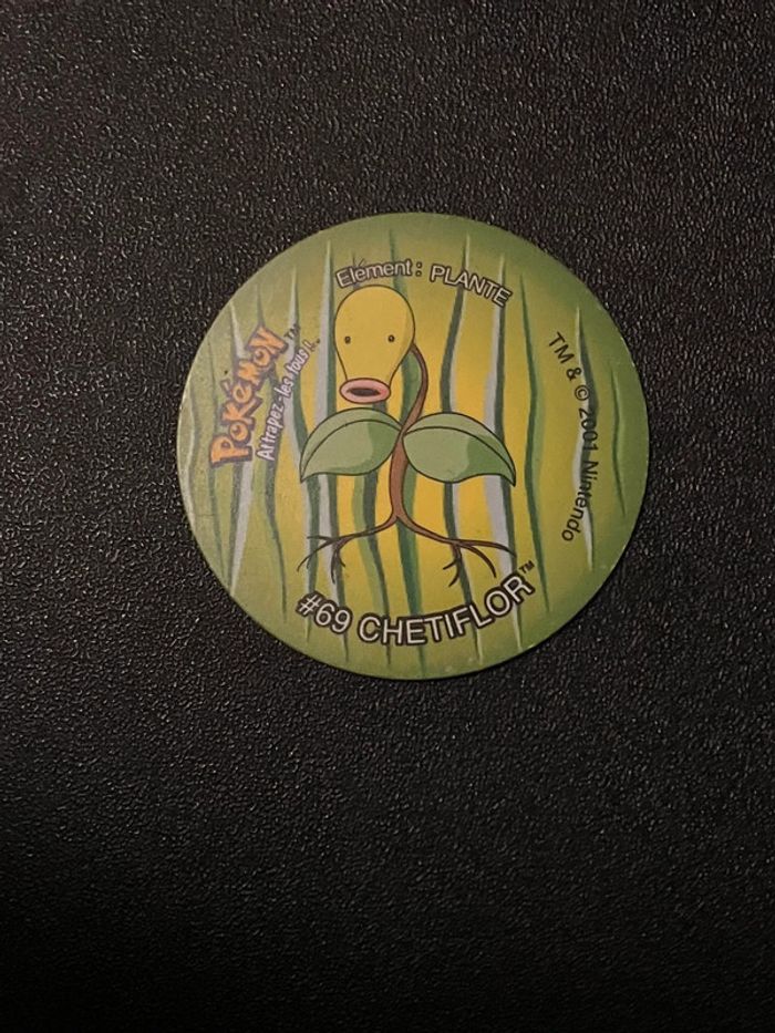Pog Tazos Pokémon Chetiflor Bellsprout En bon état.