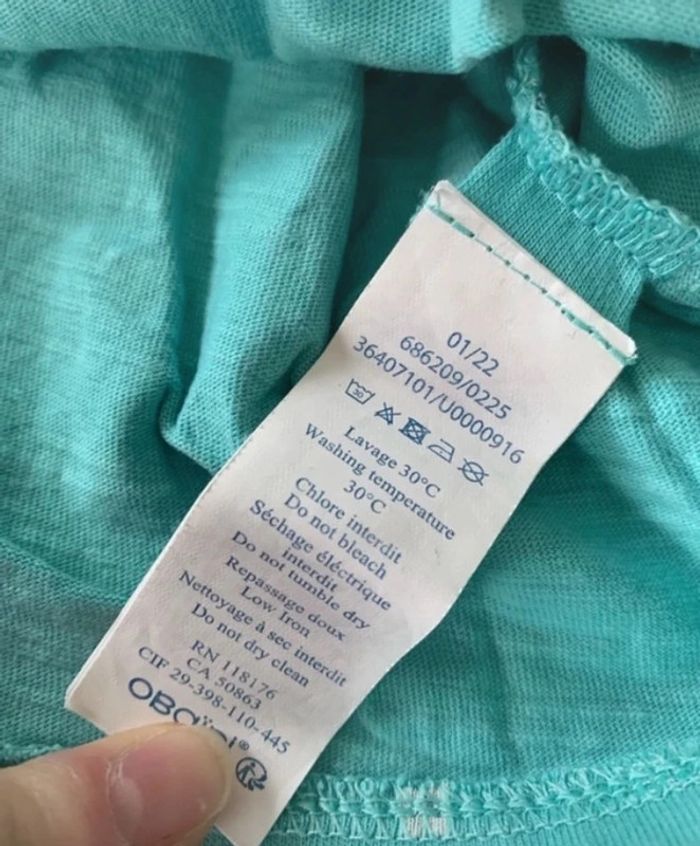 - short obaibi resserable a la taille juste lavé / impeccable sans défauts - debardeur blouse bleu turquoise obaibi / impeccable juste lavé / se passe par la tête est élastique -Haut jaune sans marque ni étiquette mais c’est bien du 6mois ! porté mais sans taches ni defauts / ferme par 2 boutons a l’épaule - bandeau assorti sans marque ⚠️ pas d’envoi vintedGo Va très bien avec un gilet corail obaibi disponible dans mon dressing 😉