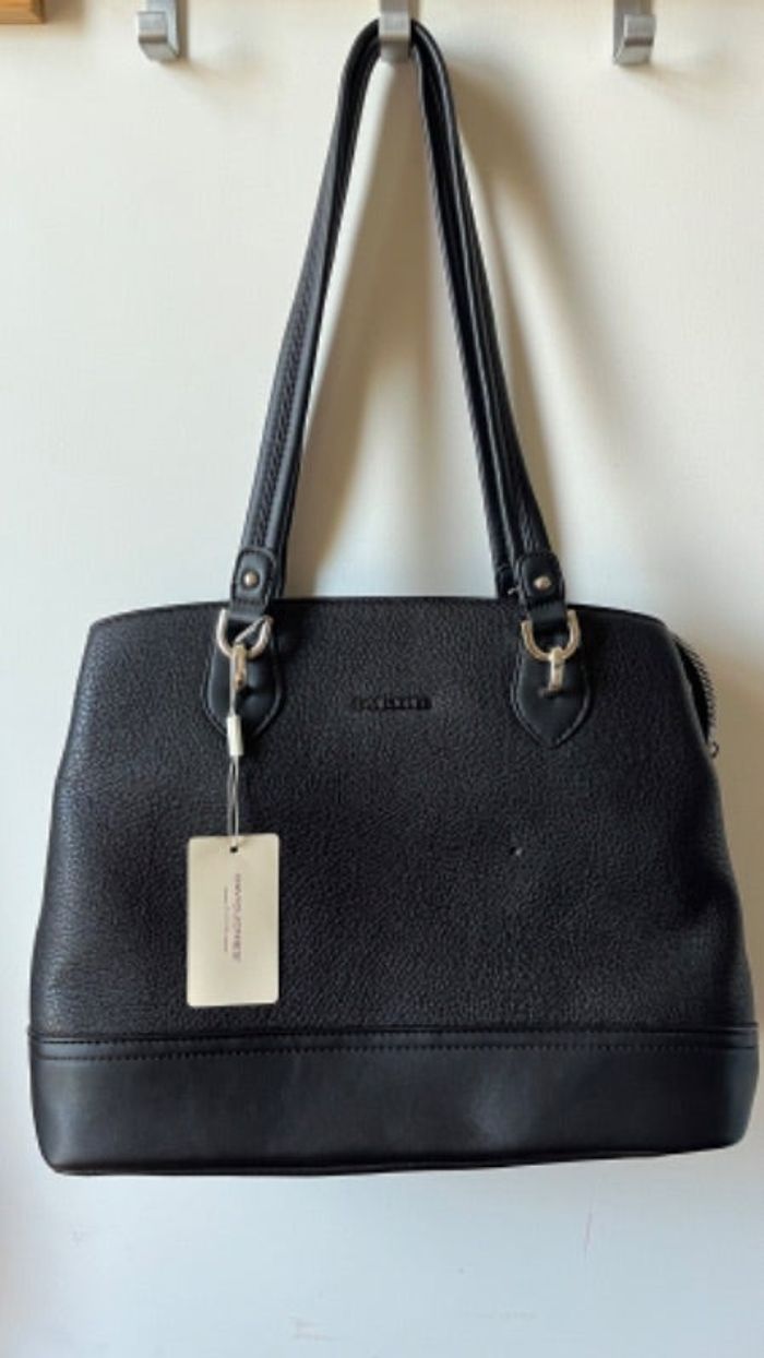 Très joli sac noir avec 1 fermeture éclaire porté épaule. Grande capacité de rangement. Le sac comporte 2 poches à fermeture éclaire (1 au milieu et une sur le côté)ainsi qu'une 3eme à l'arrière 2 petites poches supplémentaire pour téléphone s’y trouvent . Un cahier format 24x32 y rentre mais le sac ne ferme pas au dessus (voir photo avec un cahier bleu pour exemple) Dimensions: Largeur 14 Longueur 37 au plus bas, 30 au plus haut Hauteur 27 Sac totalement neuf avec étiquette Marque: david Jones N'hésitez pas à me contacter si vous avez des questions. Bon shopping ☺️ 📪 Envoi dans la journée ou le lendemain 🌺