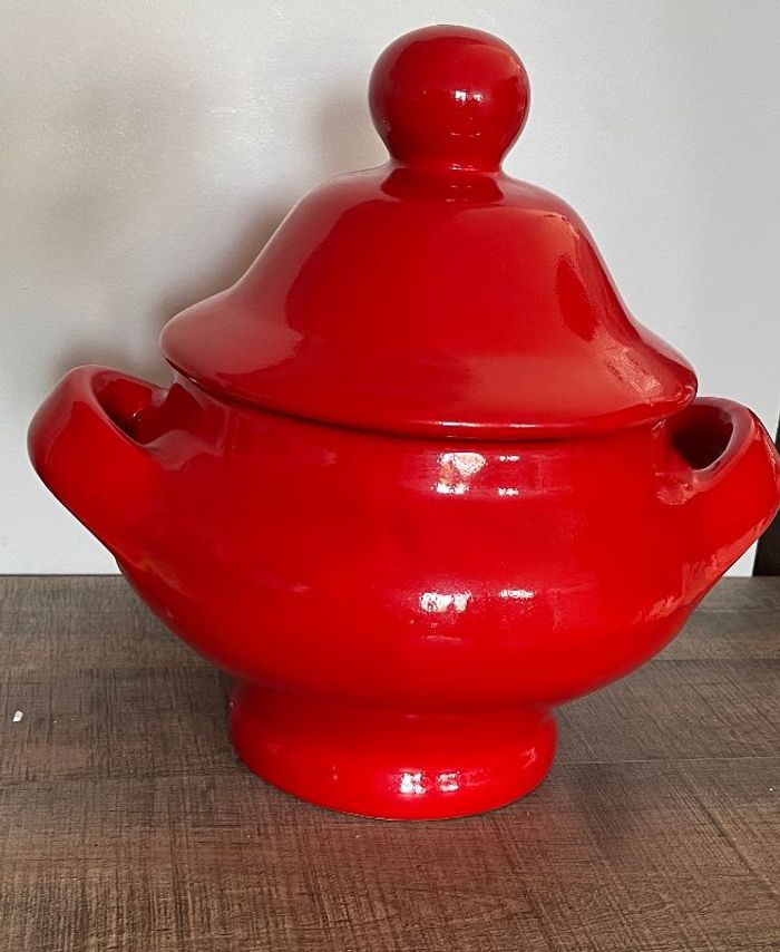 Grosse soupière vintage dimensions approximatives: hauteur avec capuchon: 30 cm largeur avec anse: 30 cm diamètre pot 20 cm N'hésitez pas à me contacter si vous avez des questions :)