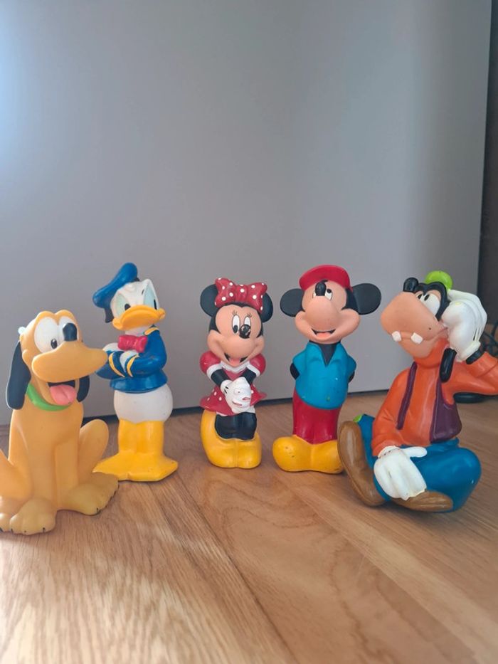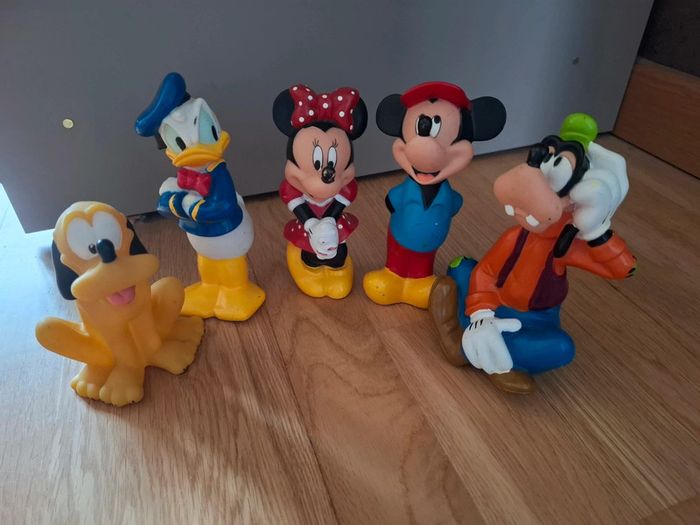 Lot de 5 figurines. Entre 12 et 14cm de haut. Donald, pluto, Minnie, Mickey et Dingo. Ont quelques marques/traces mais restent en bon état général.
