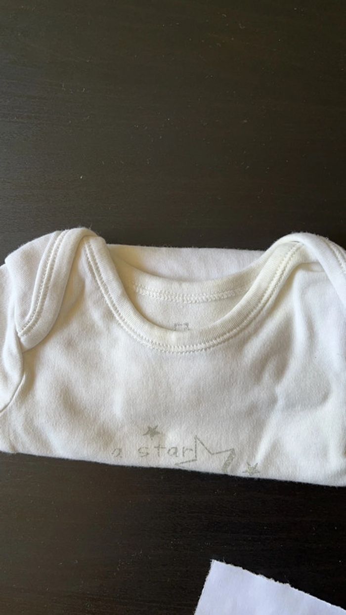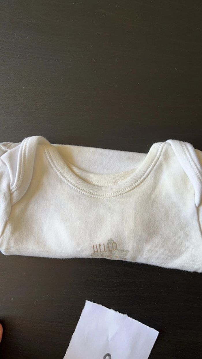 Vends bodies 1 mois. Marque Absorba pour les deux du dessus et Primark pour tous les autres. 2 d’entre eux sont légèrement jaunis au niveau du col certainement dû au stockage (voir photos).