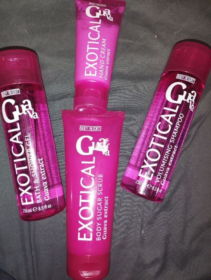 Lot avec gel douche , shampooing , body scrub et crème main