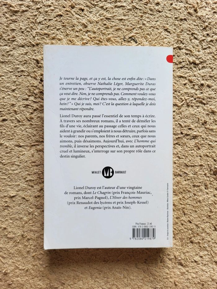 ⭐️ Nombreux livres dans mon dressing réductions sur les lots activées ✨️ 📚 Livre "L'homme qui tremble" de Lionel Duroy 📕 Dans cet autoportrait cru et lumineux, Lionel Duroy revient sur son enfance marquée par le déclassement familial, la folie maternelle, et la fuite comme refuge. À 70 ans, il interroge ses traumatismes, ses échecs relationnels et son rapport à l’écriture, questionnant son rôle dans sa propre destinée 📖 Bon état, sans usure 📍 Autofiction / essai autobiographique