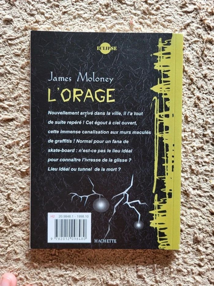 ⭐️ Nombreux livres dans mon dressing réductions sur les lots activées ✨️ 📚 Livre "L'orage" de James Moloney Pour enfants à partir de 9 ans 📕 Un nouvel élève arrive dans la ville et découvre, en passionné de skate-board, un tunnel à graffitis parfait pour glisser… mais très vite, ce lieu secret menace sa sécurité. Il doit choisir entre l’adrénaline et le danger. 📖 Très bon état