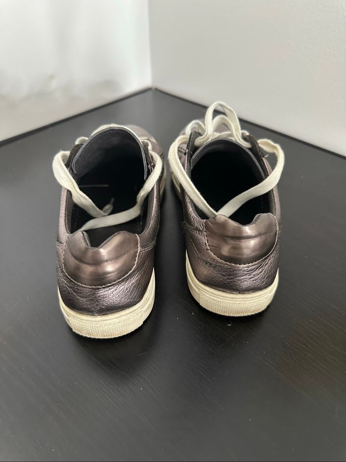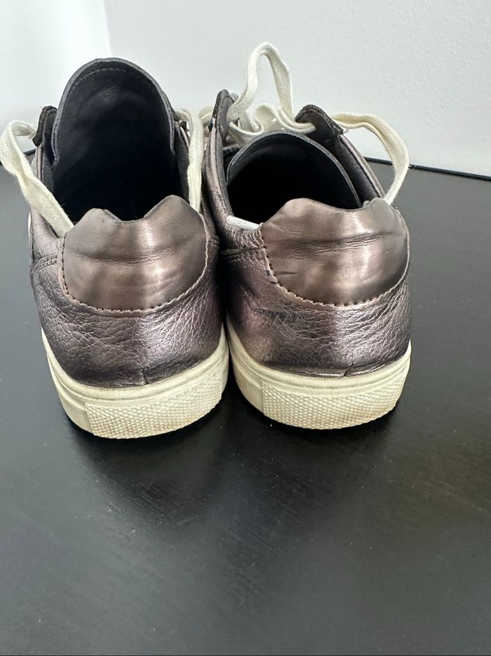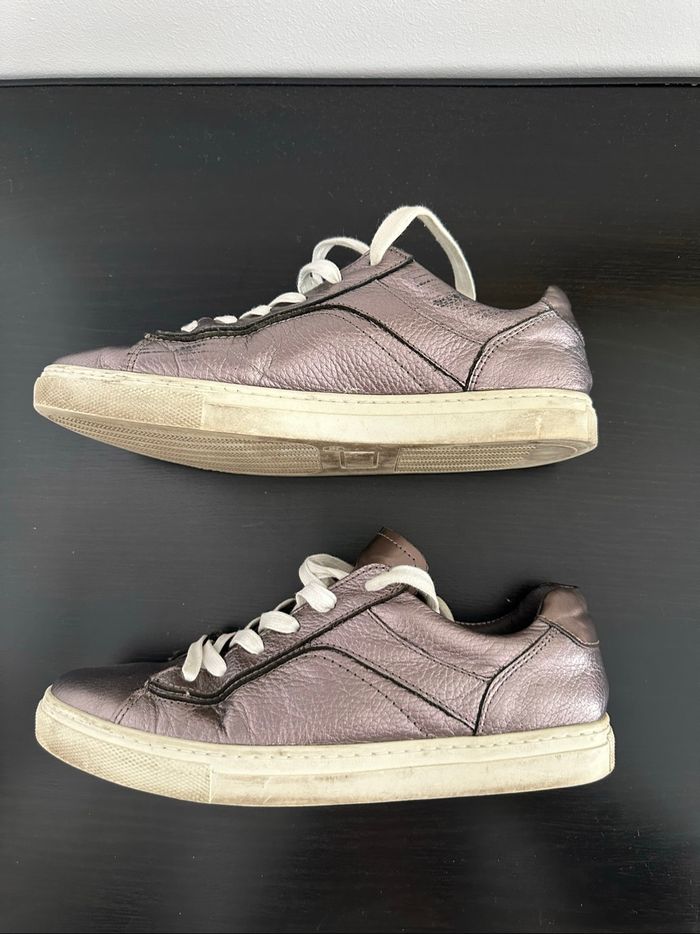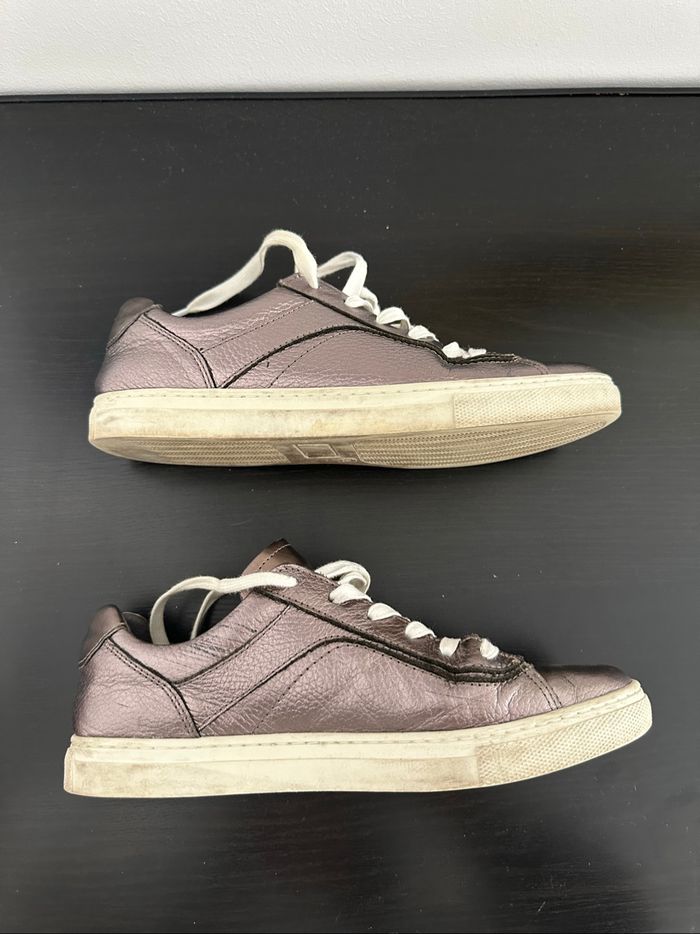 Baskets - Excellent état - Pointure 38 - Marque One Step - En cuir véritable - Se ferme avec des lacets - Brillantes holographiques argenté lila - Petits frottements par endroits (voir photos)