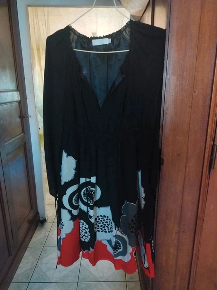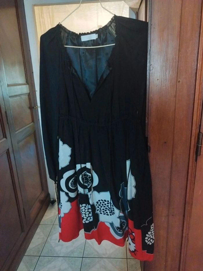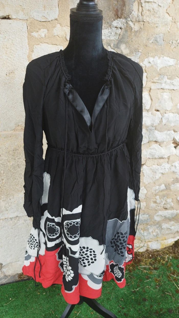 Robe noire fleurie Hello Kitty soie y2k M/38 Sanrio