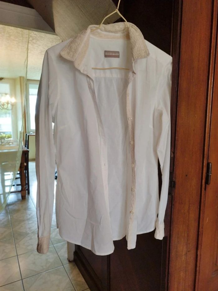 Chemise blanche col dentelle beige vintage M/38 - photo numéro 11