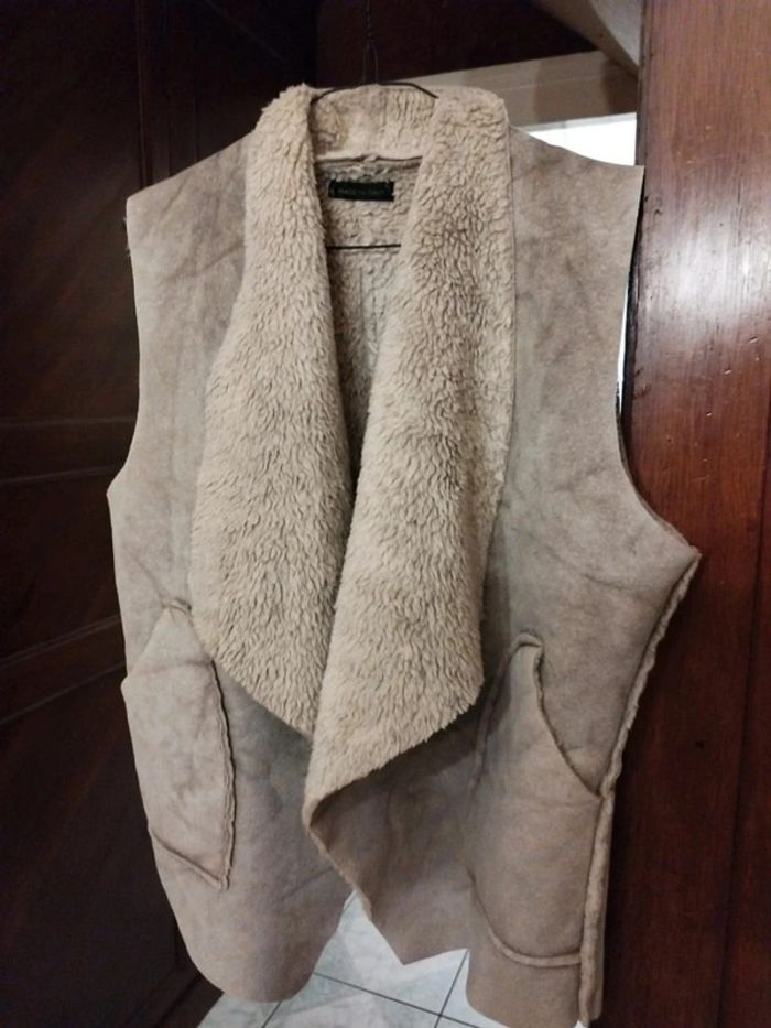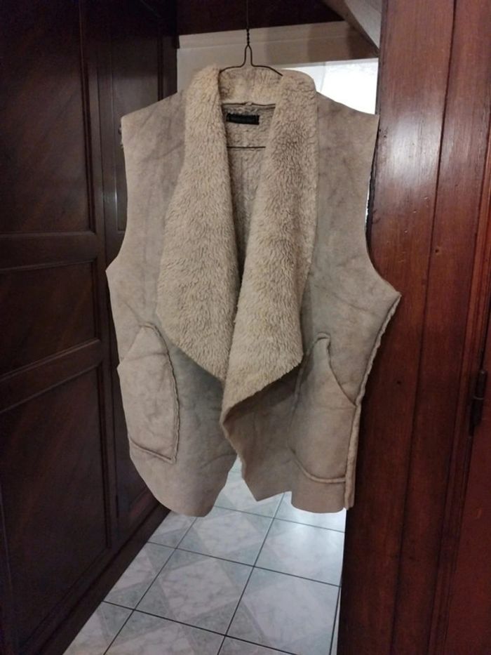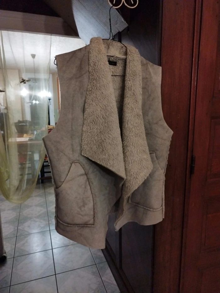 Gilet veston gris coton fausse fourrure vintage - photo numéro 1