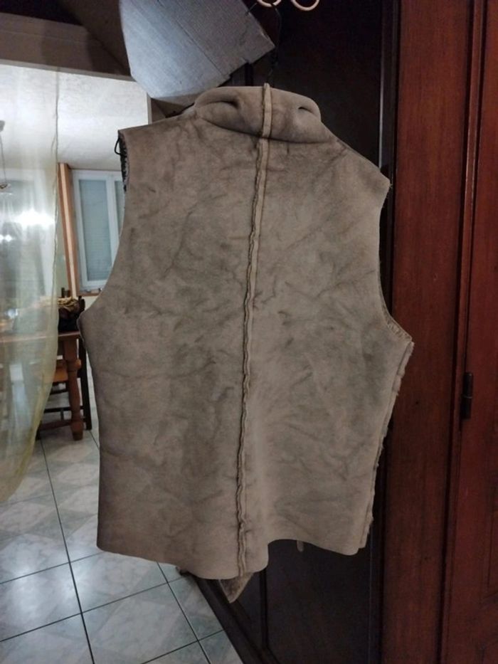 Gilet veston gris coton fausse fourrure vintage - photo numéro 4