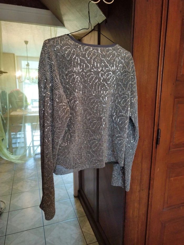 Pull sweat col rond gris sequins M/38 y2k vintage - photo numéro 7