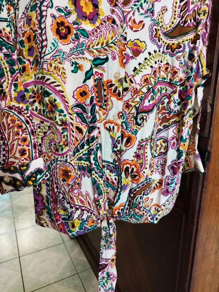 Chemise blanche violette fleurs vintage M/38 floral y2k - photo numéro 12