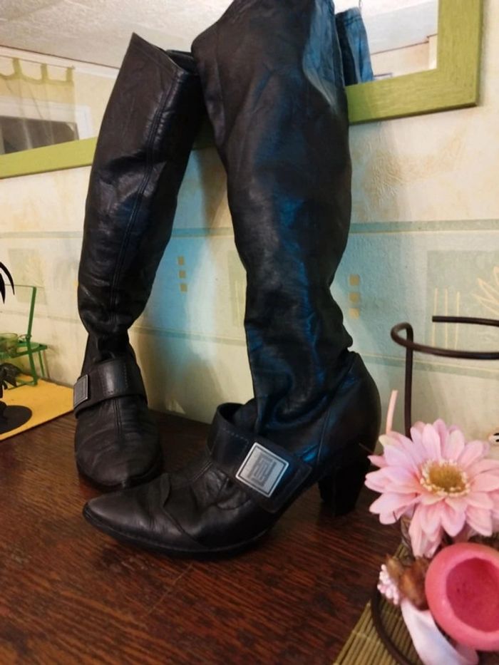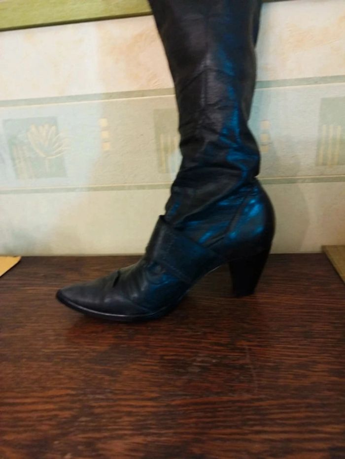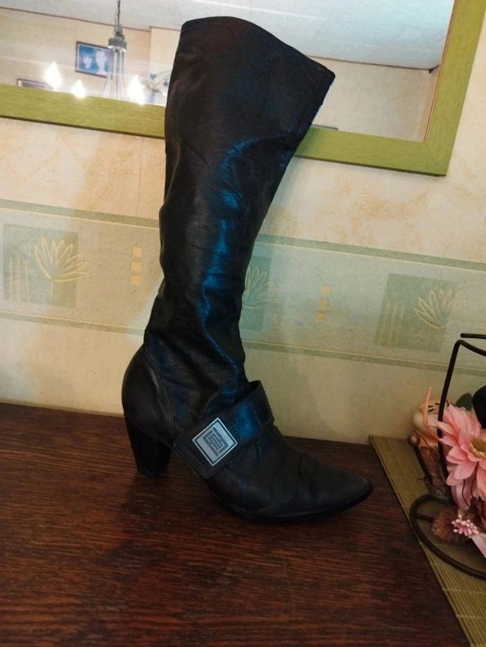 Bottes 36 hautes noires cuir talons 7 cm vintage high leather boots - photo numéro 2