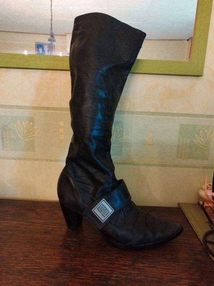 Bottes 36 hautes noires cuir talons 7 cm vintage high leather boots - photo numéro 1